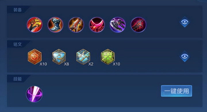 当然,如果非常喜欢这个英雄,在高分段也想拿得出场的话,建议出装思路要稍微改一下,不要用传统的爆发流输出装,尽量选择半肉输出,比如说以上这套装备铭文是比较适合的。