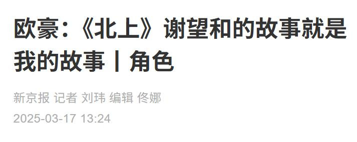 在今年的剧情现代剧《北上》里面,欧豪饰演有远大理想和抱负的谢望和。