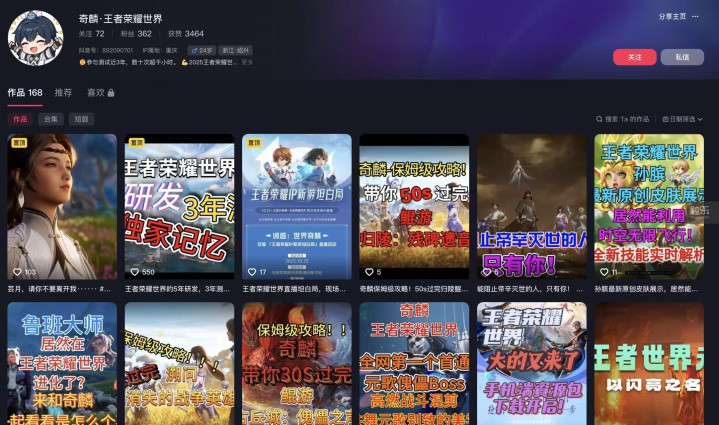 对奇麟来说,成为《王者荣耀世界》的攻略博主也是件完全没有预想过的事。他记得,最初只是因为《王者荣耀世界》的改动太频繁了,每次测试,游戏都会有不少变化,小到一些动作细节、角色建模的表现,大到整个养成系统的变动、任务系统的减负。