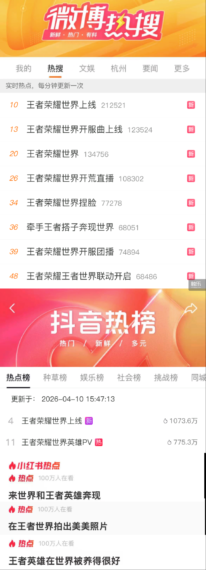 公测首日,与《王者荣耀世界》相关的话题登上了多个热搜榜单