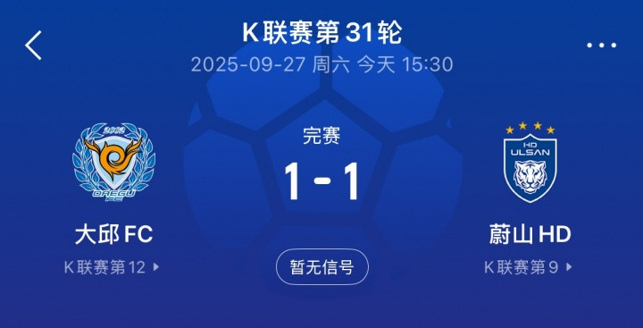 直播吧09月27日讯K联赛第31轮今天结束的两场比赛,两支中超球队接下来的亚冠对手均收获平局。