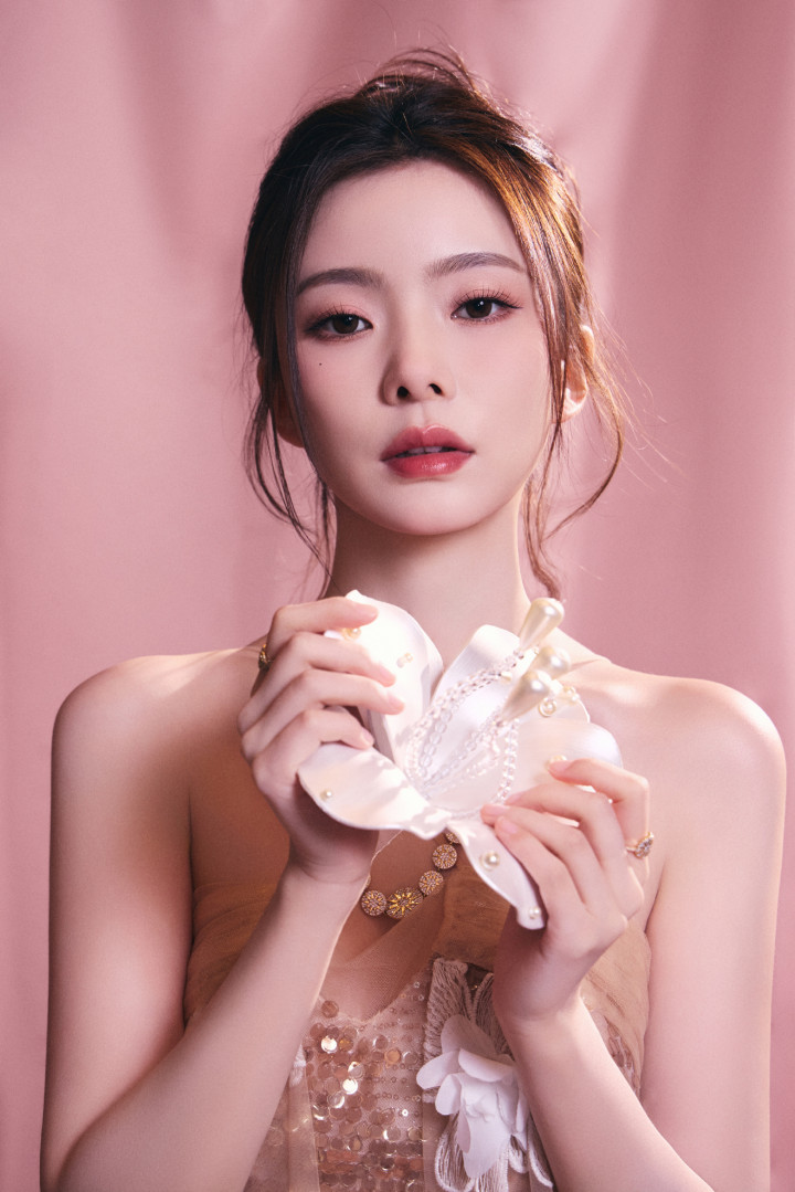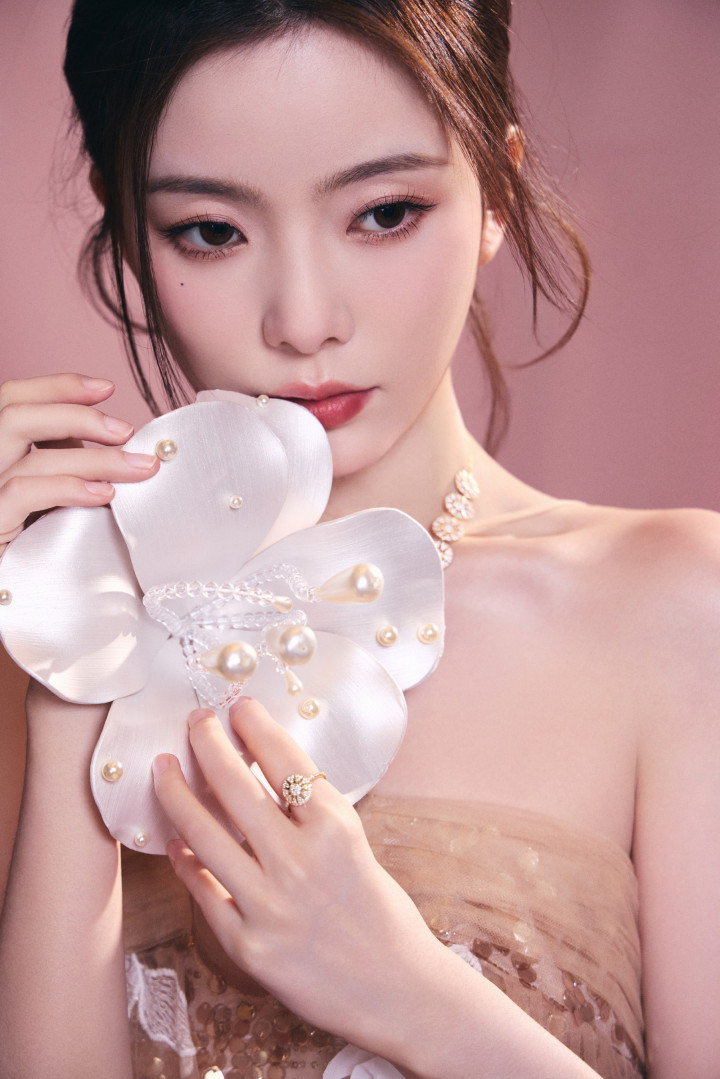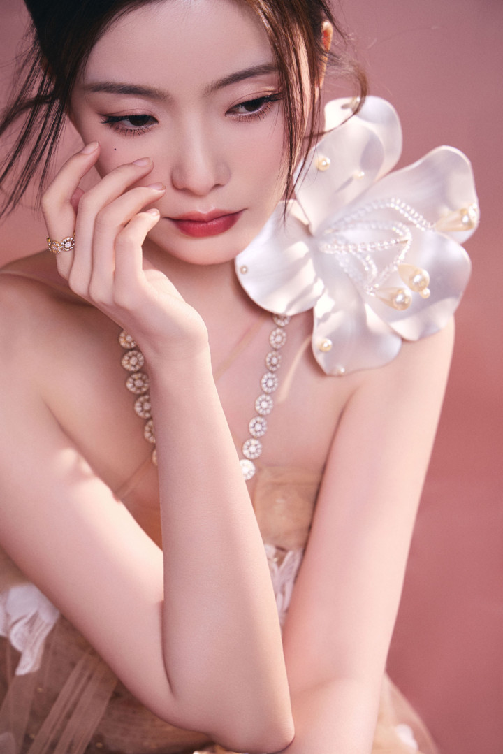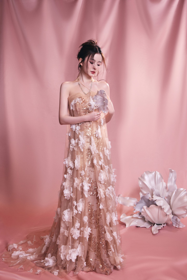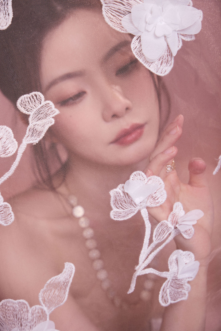陈卓璇是刚从花境醒来吧!裸纱裹花簇踱步,美到不敢惊扰