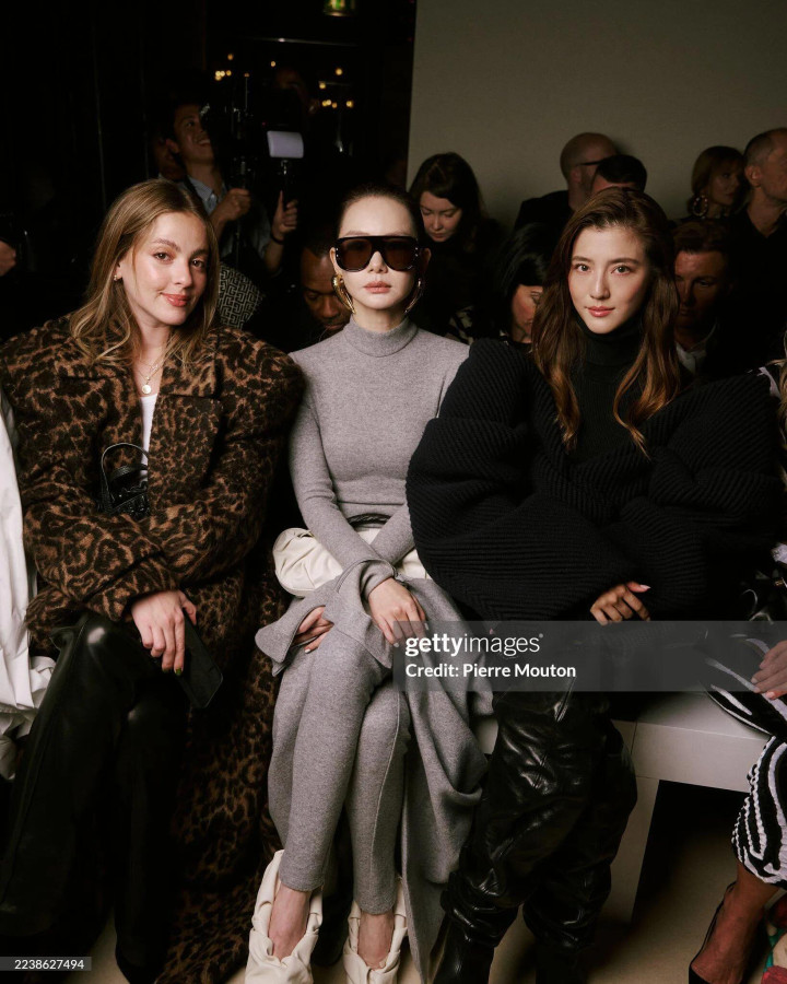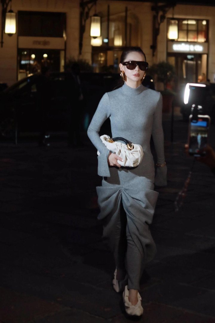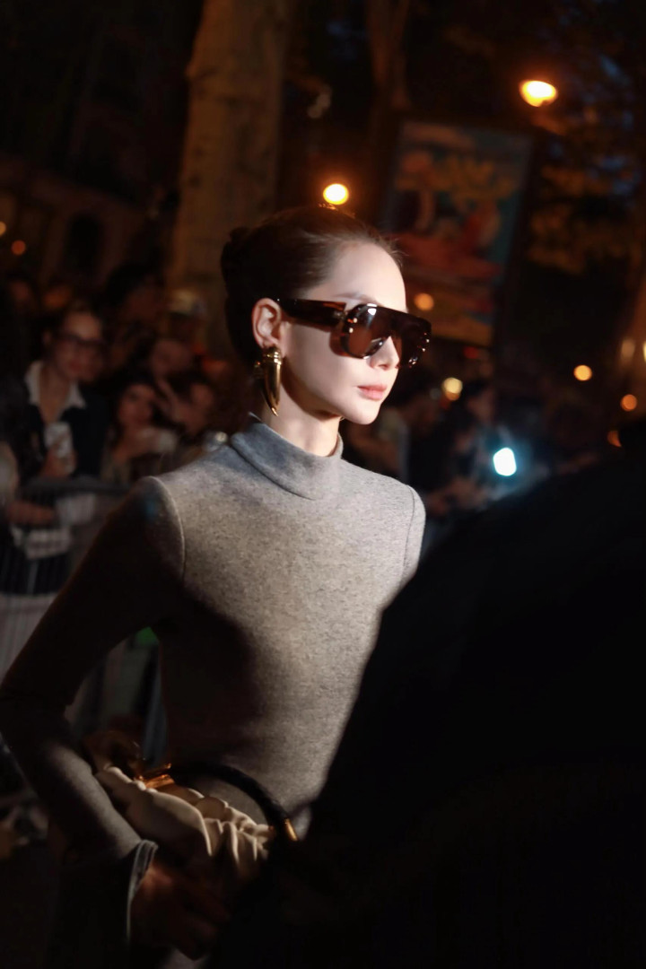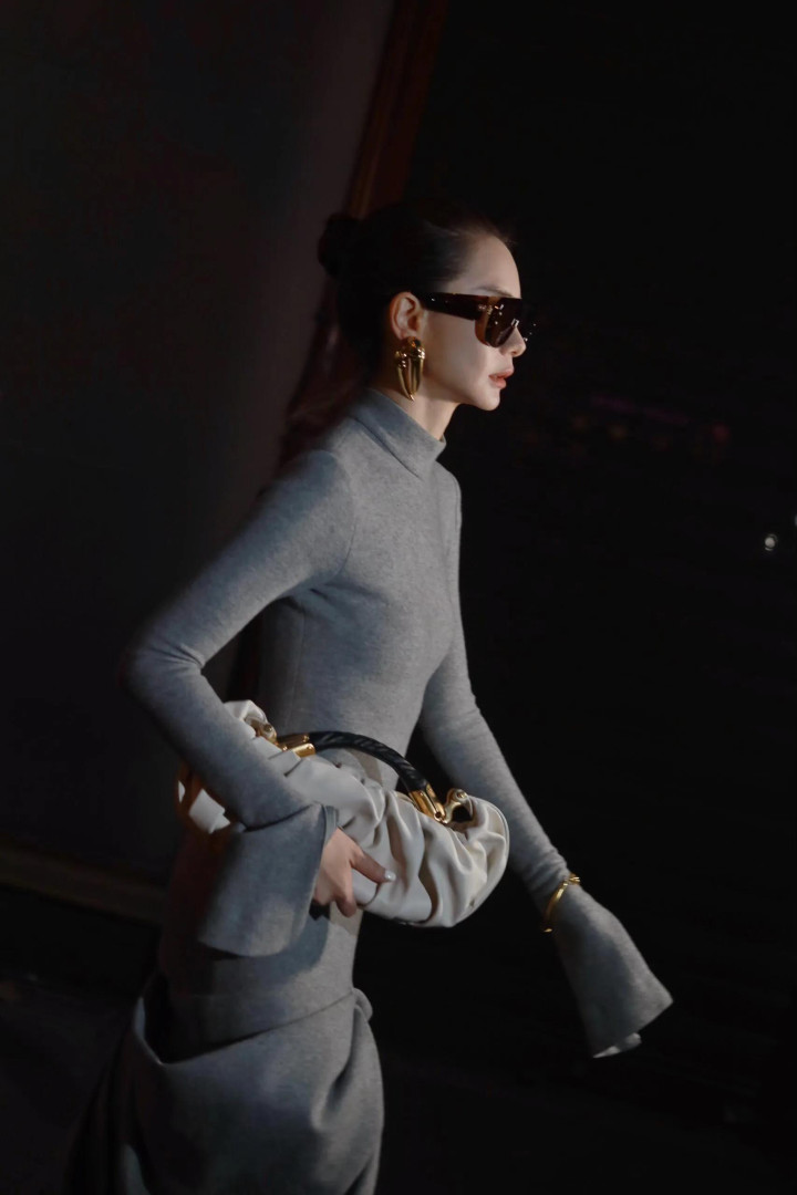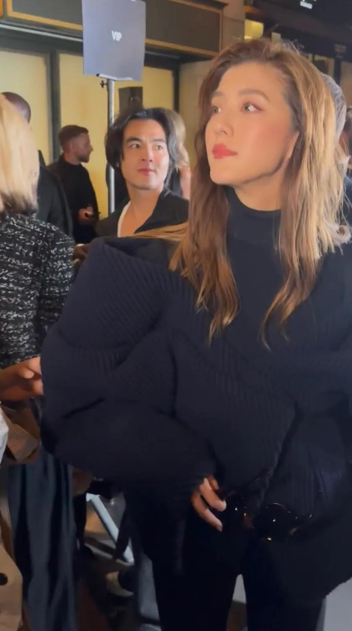 吴千语的脸很小巧精致,黑色高领毛衣衬的她很贵气。嫁给施伯雄之后的吴千语,气质更贵气了,相比去年参加菲拉格慕大秀的她,更自信,穿衣也更有品味了。