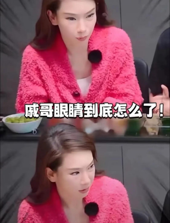 戚薇这次看秀戴了一副夸张的大墨镜,之前参加综艺的时候,她的眼睛吊吊的,让观众笑话了很久。这次她直接戴上墨镜,把眼睛遮起来了。