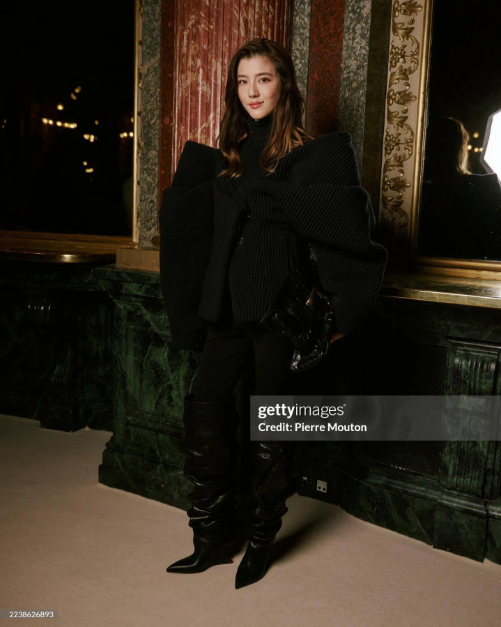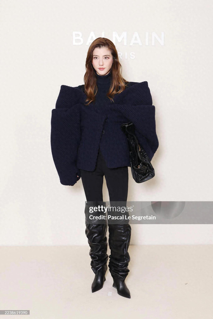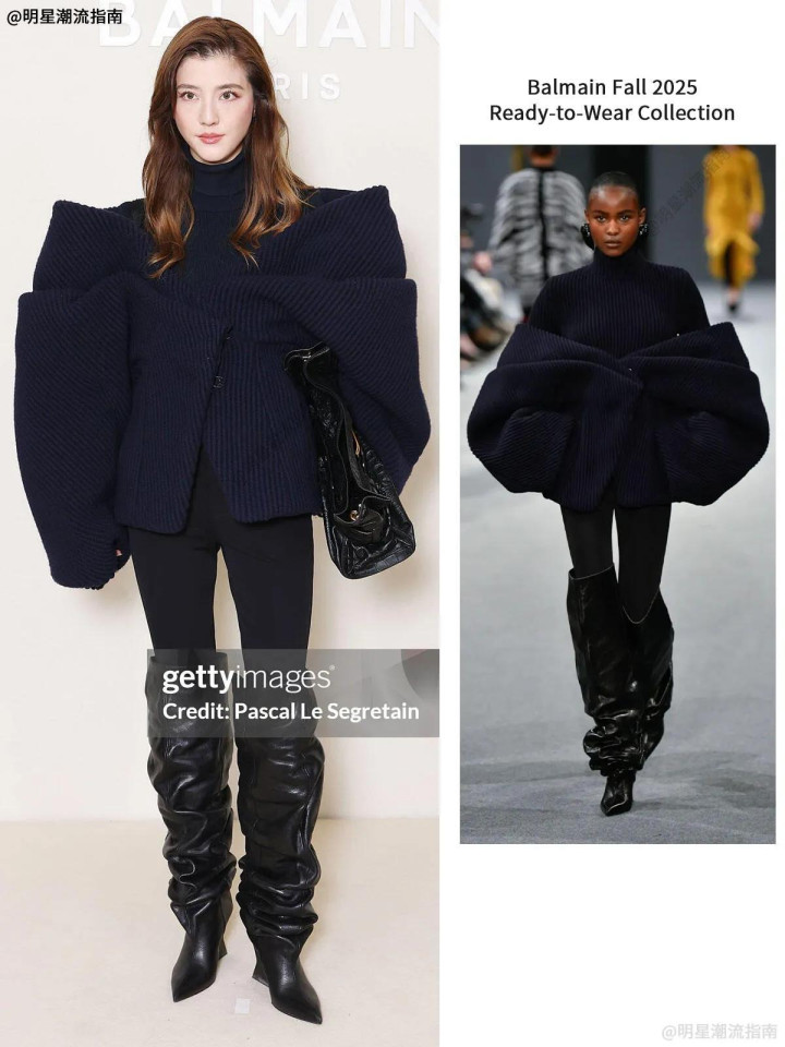 G社给吴千语拍的秀场生图很好看,她身穿Balmain2025年秀场款,堆叠的黑色高筒靴,搭配有夸张袖子的外套,吴千语展现出与平时不一样的率性。