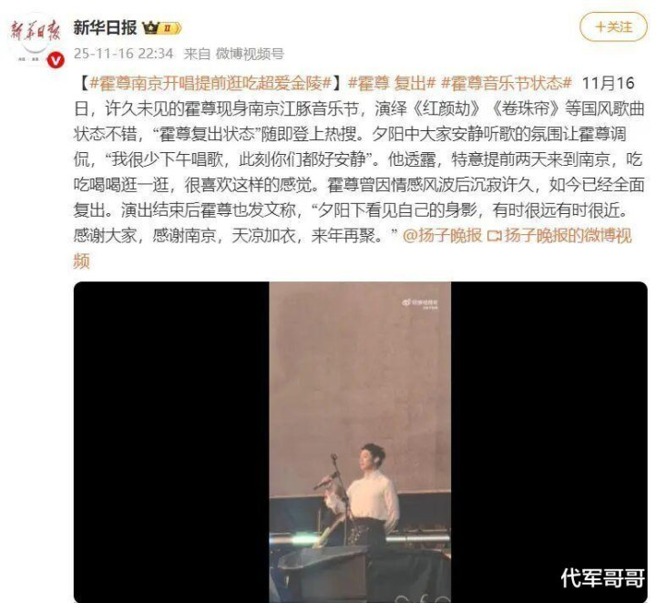 相较于 2023 年重启个人演唱会时的拘谨,此次音乐节上的霍尊展现出游刃有余的舞台掌控力,多次引发全场大合唱,乐评人 @耳帝直言 “他用业务能力抹平了舆论裂缝”。据现场工作人员透露,霍尊团队已接触 2026 年《我是歌手》重启版,拟以原创国风曲目踢馆,复出野心可见一斑。