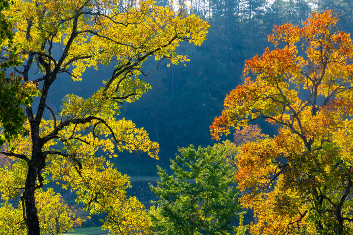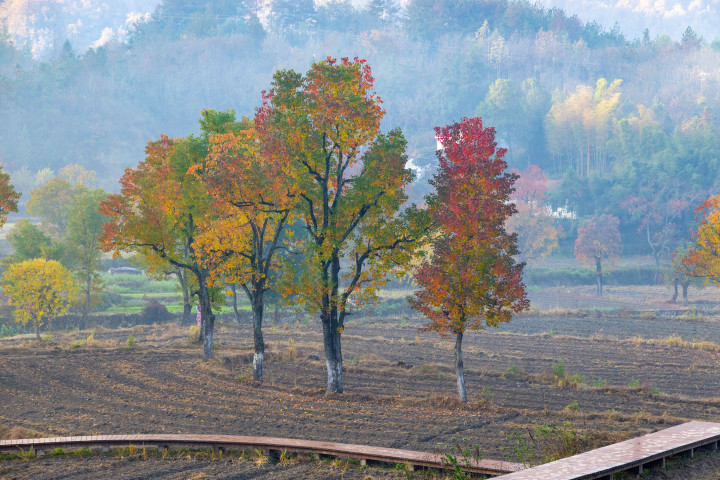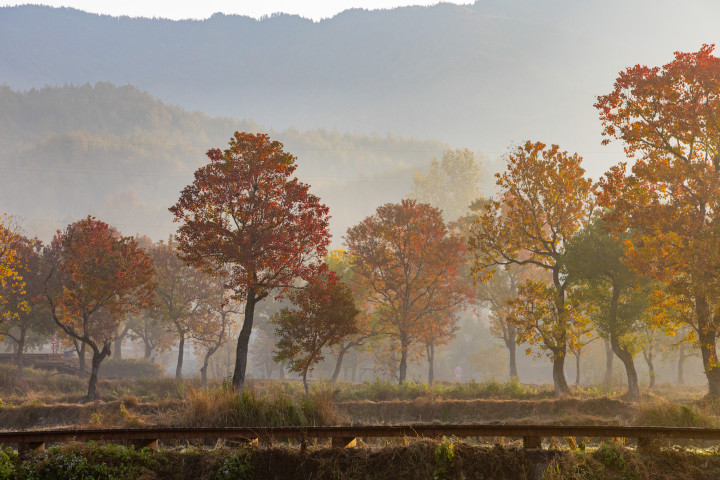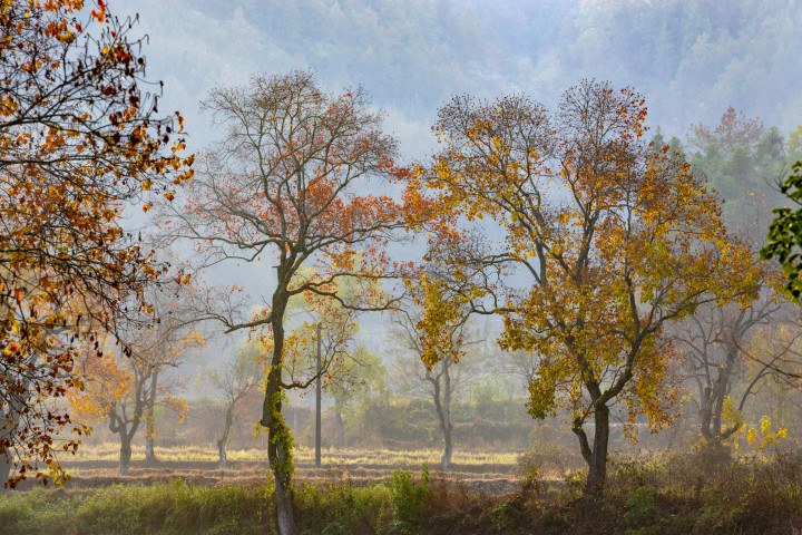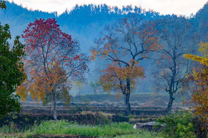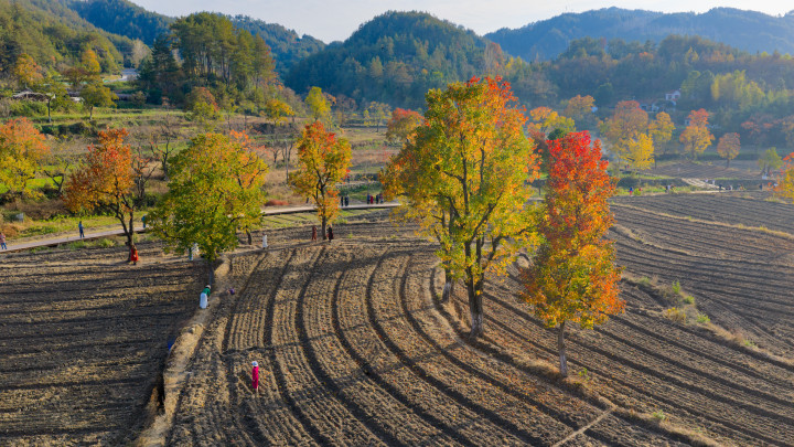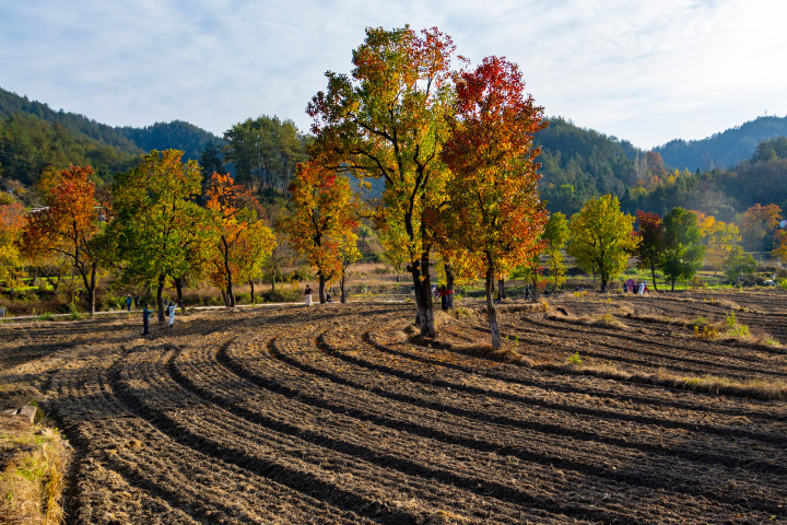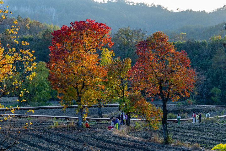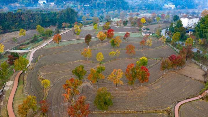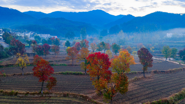 大别山的秋意总爱藏在褶皱里,徐凤冲便是被秋光偏爱的那一处。这座隐于大别山旅游度假区的村落,没有刻意雕琢的景致,只是将大亩的乌桕红叶与层层梯田铺展成画,让炊烟与红叶缠绵,让蛙鸣与秋声和韵,每一寸土地都浸着“田园诗”的底色。若你想寻一处“红叶绕村,梯田叠彩”的秘境,徐凤冲的秋,正等你拆封。